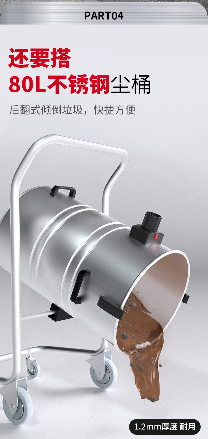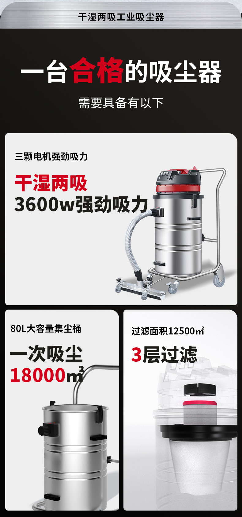 辽源坦洁380V双桶不锈钢工业吸尘器X7系列