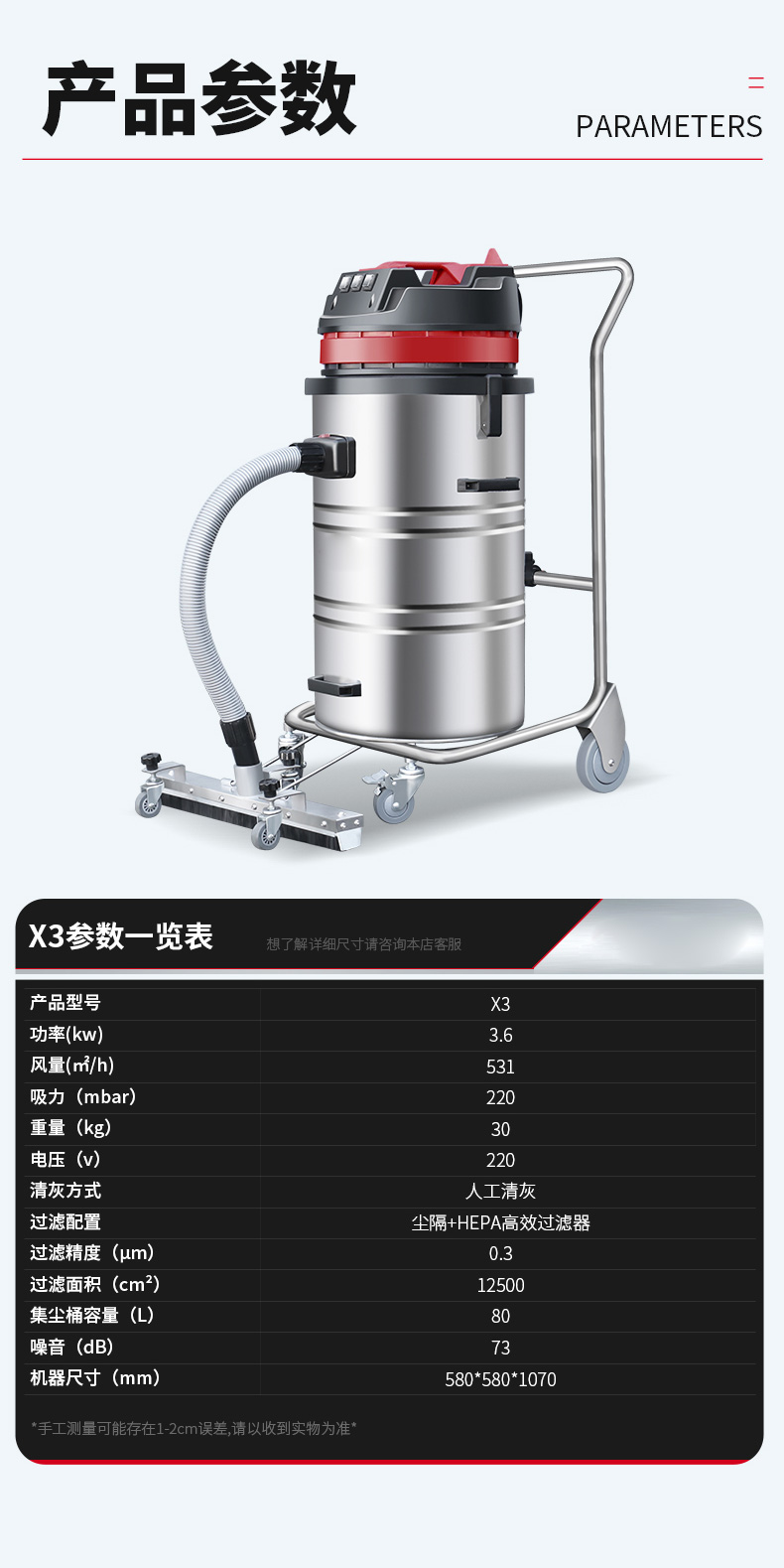辽源坦洁220V单桶不锈钢工业吸尘器X3系列