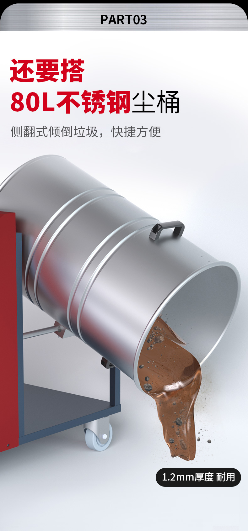 辽源坦洁380V双桶不锈钢工业吸尘器X7系列